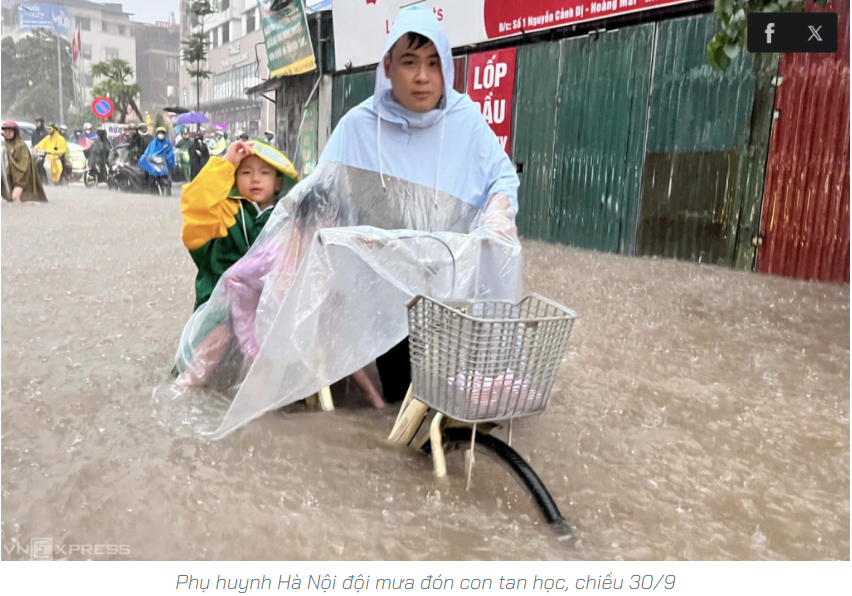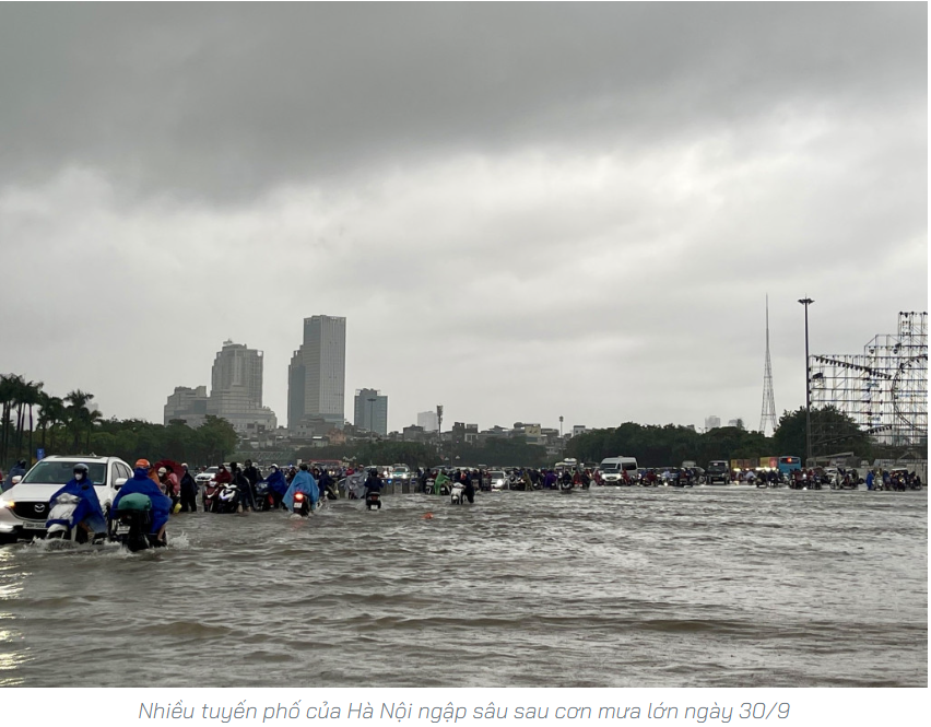Tính đến 16h ngày 30/9, Hà Nội đã ghi nhận 75 điểm ngập úng, chủ yếu tại khu vực nội đô và các cửa ngõ phía Tây. Nhiều tuyến đường ngập sâu khiến giao thông rối loạn. Trong sáng cùng ngày, hàng loạt trường học đã thông báo cho học sinh nghỉ học hoặc lùi thời gian đón học sinh.