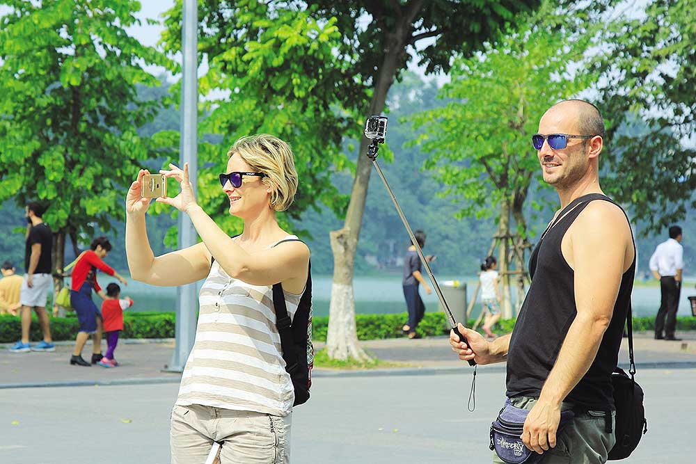 Du khách quốc tế khám phá không gian đi bộ Hồ Hoàn Kiếm, Hà Nội. Ảnh: VGP/ Minh Anh.