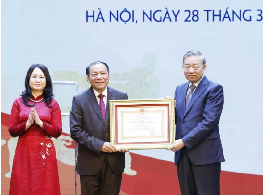 Tổng Bí thư Tô Lâm trao Huân chương Lao động hạng Nhất tặng Cục Thể dục Thể thao Việt Nam (Bộ Văn hóa, Thể thao và Du lịch). Ảnh: TTXVN.